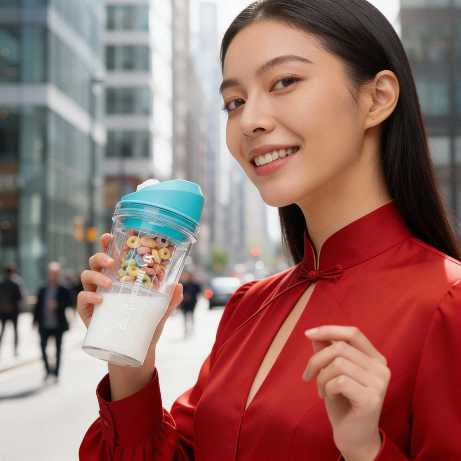 Design 2-en-1 séparateur de lait et de céréale qui révolutionne vos matins pressés. MY MORNING CUP™, c’est l’innovation condensée dans un design compact et intuitif.